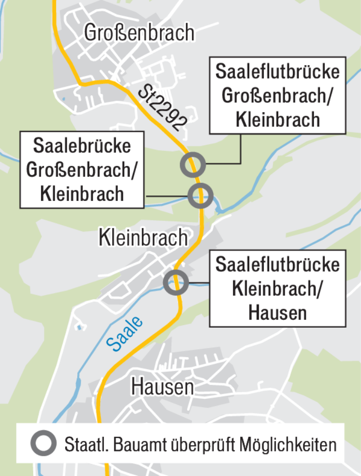 In den folgenden Jahren sollen die Bogenbrücke und die Betonbrücke zwischen Großen- und Kleinbrach sowie die Bogenbrücke von Kleinbrach nach Hausen in einem Arbeitsgang saniert bzw. neu errichtet werden. Dabei soll die Straße zwischen Großenbrach und Bad Kissingen voll gesperrt sein. Insbesondere die lange Bauzeit und die Umleitungsstrecke bereiten den Kommunen und Gewerbetreibenden jedoch Sorgen.