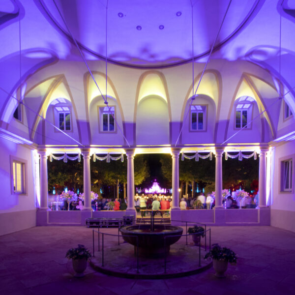 Das diesjährige Highlight der Gartenparty war die Illumination der historischen Gebäude rund um den Kurpark. Rund 118 Lampen inklusive 1.300 Meter Kabel sorgten im Zusammenspiel mit den Kerzen und Lampions für ein einmaliges Erlebnis im Bad Bockleter Kurpark. Die historischen Gebäude im Park wurden mit LED-Strahlern in verschiedenen Farben beleuchtet. So konnten die Besucher beim Schlendern durch den Park die verschiedenen Farbspiele genießen. Manche Gäste verweilten auch einfach auf den Parkbänken an den Springbrunnen und verfolgten die Illumination.