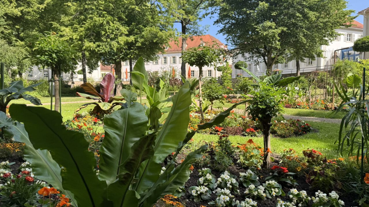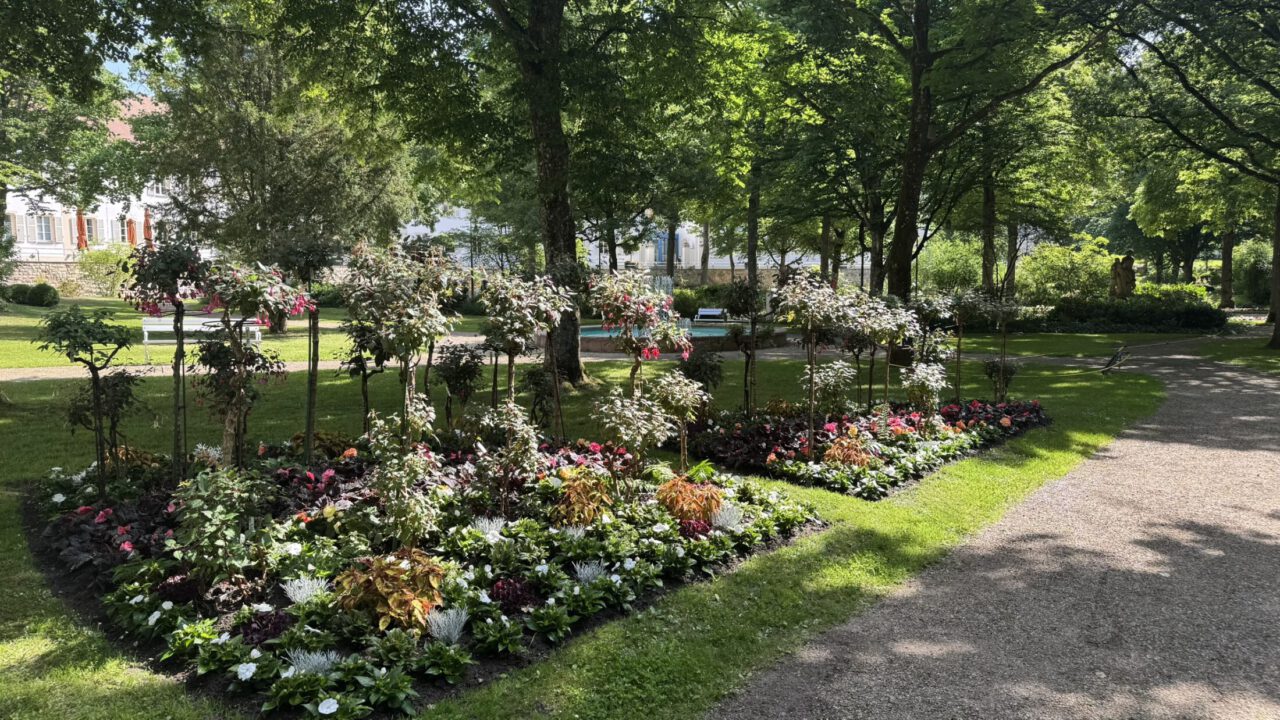 Ergänzt wird das sommerliche Blütenbild durch besondere Solitärpflanzen und Hochstämmchen, die eigens in der Kurgärtnerei Bad Kissingen gezüchtet wurden – darunter Wandelröschen, Pfeilblätter, Kapp-Bleiwurz, Hammerstrauch und Bananenstauden. Und nicht zu vergessen: Auch die Palmen sind aus ihrer Überwinterung zurückgekehrt und bringen mit ihrem majestätischen Wuchs wieder mediterranes Flair in den Kurpark.