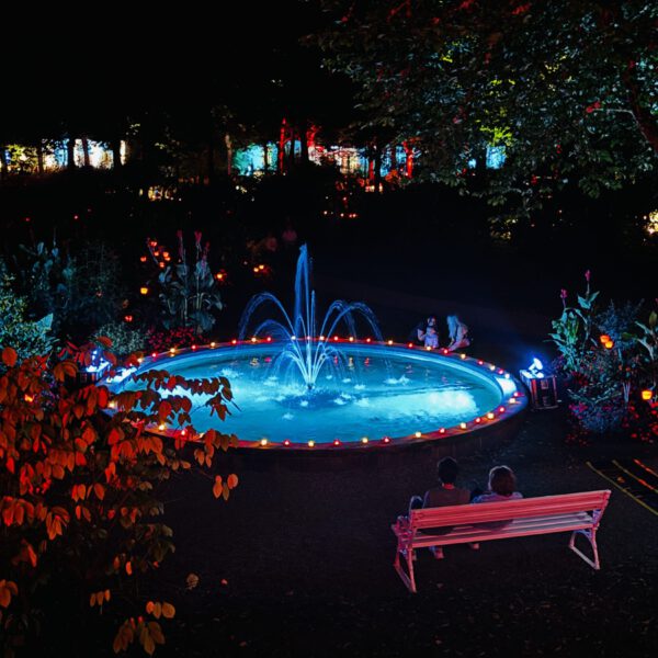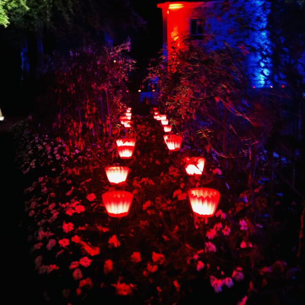 Ein weiterer Höhepunkt der Gartenparty war die atemberaubende Illumination des Kurparks. Pünktlich mit Einbruch der Dämmerung tauchten 1.000 Lichter und über 100 LED-Strahler den Kurpark in ein farbenfrohes Lichtermeer. Verantwortlich für die professionelle Illumination war die Firma Strobl & Pancochar GbR aus Aschach sowie die Kurgärtnerei Bad Kissingen, die mit ihrer eindrucksvollen Beleuchtung eine ganz besondere Atmosphäre schufen und die Besucher verzauberten.