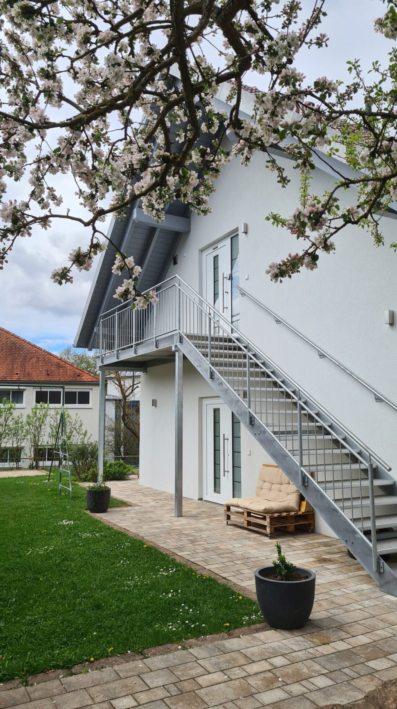 Die Ferienwohnung liegt im Dachgeschoss des rückwärtigen Nebengebäudes mit separatem Zugang und Balkon und verfügt über 3 Zimmer mit einer Größe von ca. 75 m².