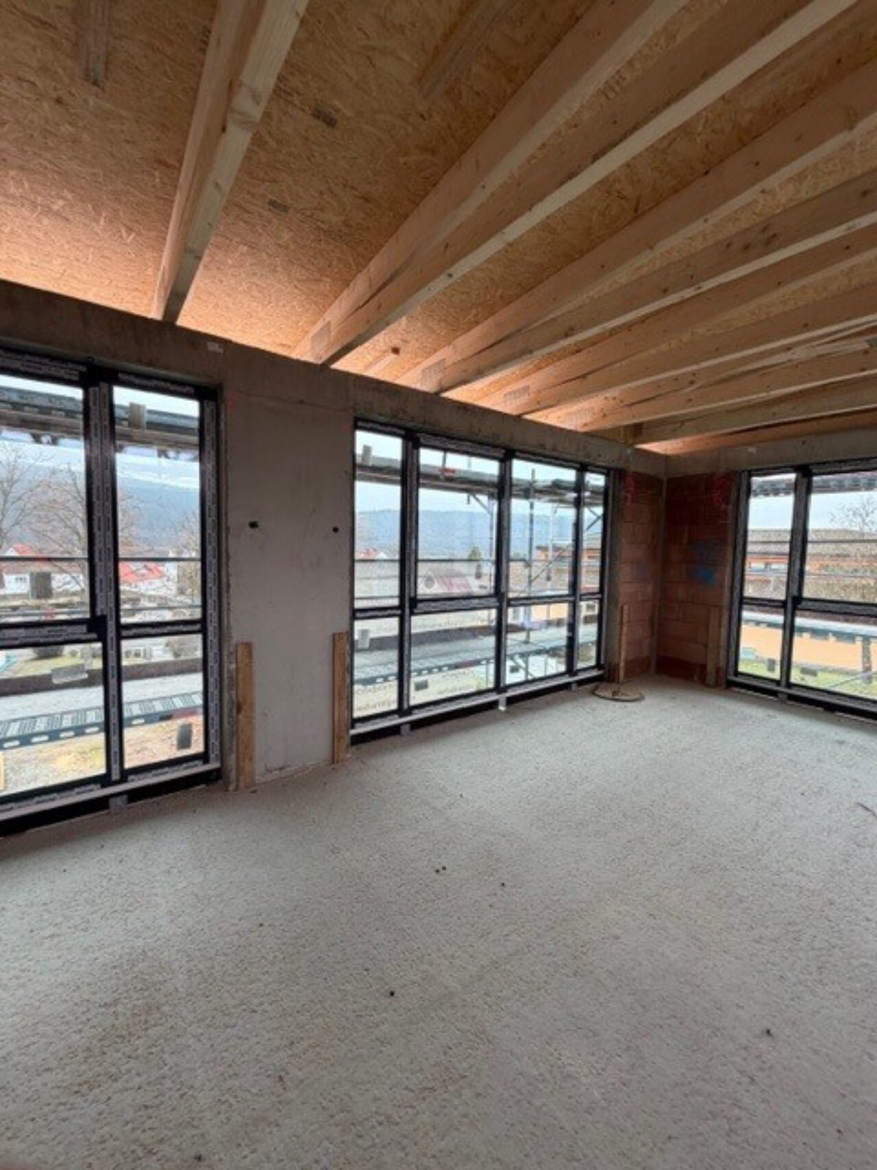 Die Dachbinder sind verlegt, die Schalarbeiten erledigt – der Bau macht sichtbare Fortschritte.