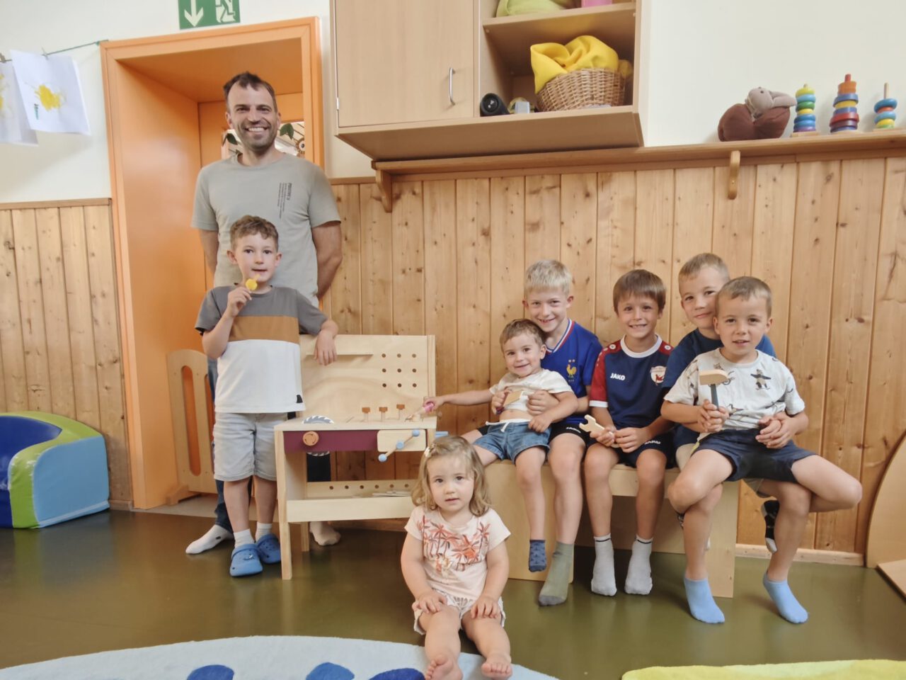 Neue Kinderwerkbank für die Krippenkinder, spendiert von der Neubausiedlung