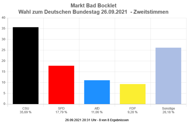 Ergebnis Bundestagswahl 2025 – Markt Bad BockletBundestagswahl 26.09.2021 - Erststimmen