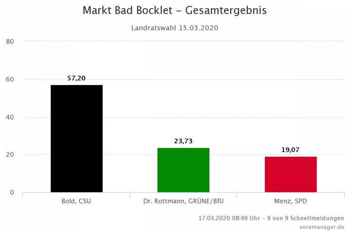 Am 15.03.2020 wurde im Markt Bad Bocklet der Landrat, der Gemeinderat und der Kreistag gewählt. Die Wahlergebnisse finden Sie unter folgendem Link: