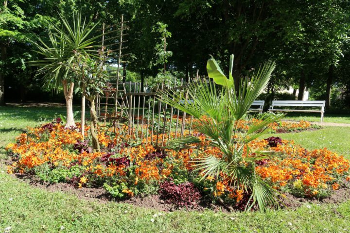Im Bad Bockleter Kurgarten gibt es in diesem Jahr ein Dschungelbeet. So kann man neben den klassischen Pflanzenarten jetzt auch eine große Auswahl an Palmengewächsen in den Beeten bestaunen.