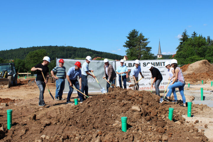 23.06.2020 – Der Spatenstich für den REWE Lebensmittelmarkt im Gemeindeteil Aschach wurde am 23.06.2020 vollzogen. Bürgermeister Andreas Sandwall, Geschäftsführer Thomas Beck, Bauhofleiter Stefan Metz, Verantwortlicher für die Bauleitplanung, Matthias Kirchner (Bautechnik Kirchner), Architekt Martin Giedl, Geschäftsführer Herr Rosentritt und Projektleiterin Frau Ödamer (ROSBO GmbH), sowie Bauleiter Herr Omert und Polier Herr Wehner (SO Bau) versammelten sich, um den Spatenstich für den REWE-Lebensmittelmarkt zu feiern.