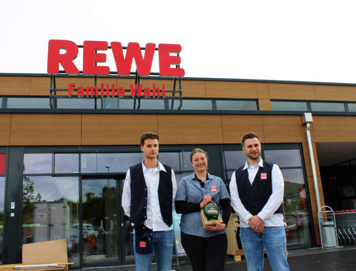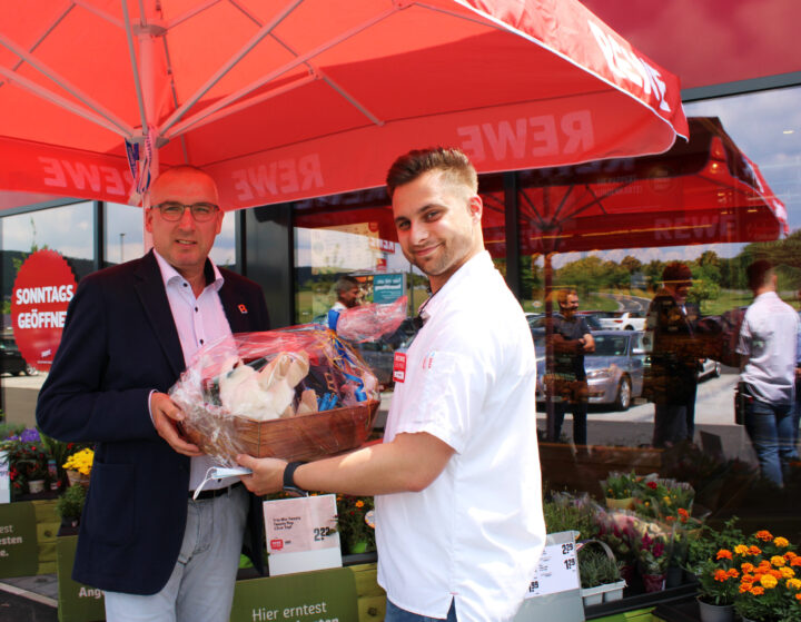 Der Filialleiter Lukas Wahl, 30 Jahre, kommt gebürtig aus Poppenlauer. Zusammen mit seiner Frau Yvonne Wahl, 32 Jahre, lebt er nun in Steinach. Zuvor war er für acht Jahre in Bamberg und hat dort bereits die Eröffnung von zwei REWE Märkten begleitet.