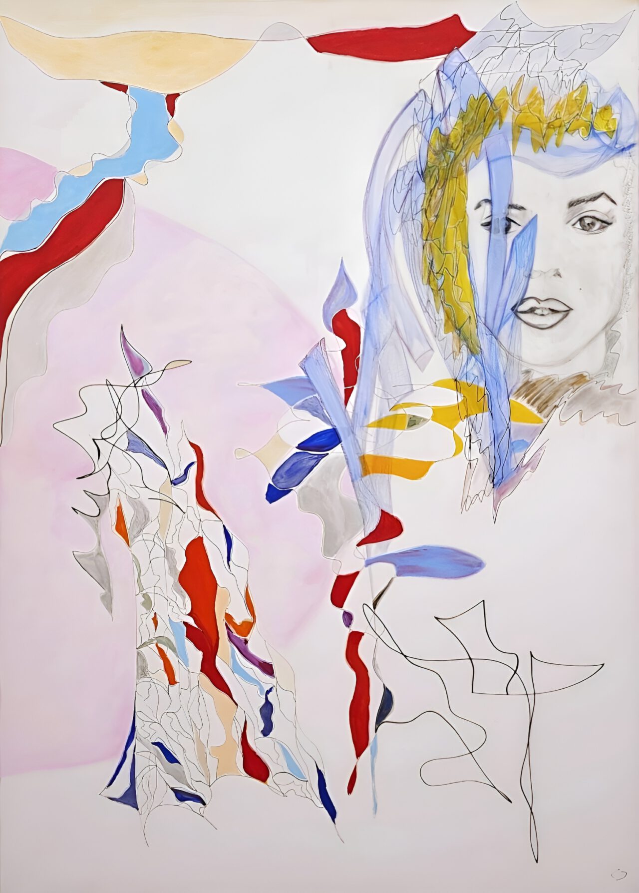 Monroe“ (verschiedene Techniken auf Leinwand) abstrakte und figurative Elemente in einem filigranen Geflecht aus Formen und Linien. Das mit Bleistift gezeichnete Gesicht erzeugt durch die reduzierte Darstellung eine eindringliche, beinahe verletzliche Präsenz. Ihr Sohn Christopher, der im Marketing und Grafikdesign selbstständig ist, präsentiert großflächige Acrylgemälde, die sich durch präzise gestaltete geometrische Formen und lebendige Abstraktionen auszeichnen.